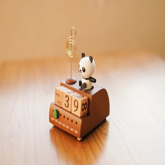 Wooden panda calendar music box, desktop bedroom ornaments ornaments toys