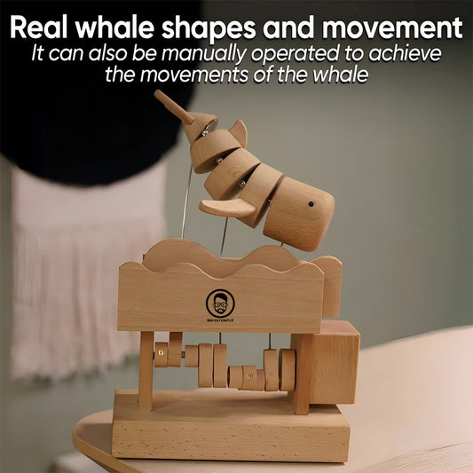 BAI GU UNCLE Wooden Mechanical Whale Decoration Statues, Handmade Whale Made of Wood for Home Decoration