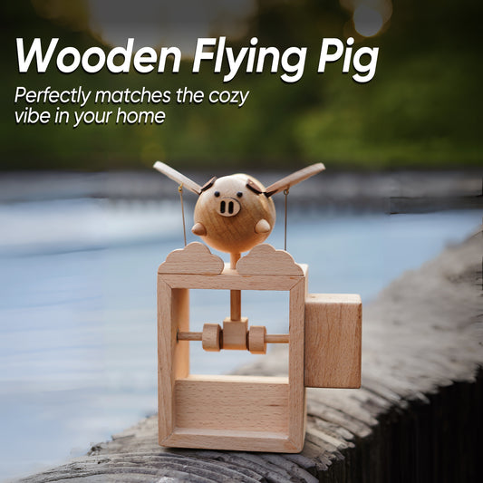 BAI GU UNCLE Handmade Wooden Statues Flying Pig, Works of Art Made of Wood for New House Decoration